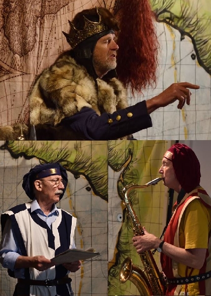 Eine Szenische Lesung mit Lothar Englert - Autor des Buches Radbods Schwert -, Hans Sakowski, Musik  und Norbert Knitsch, Schauspiel.