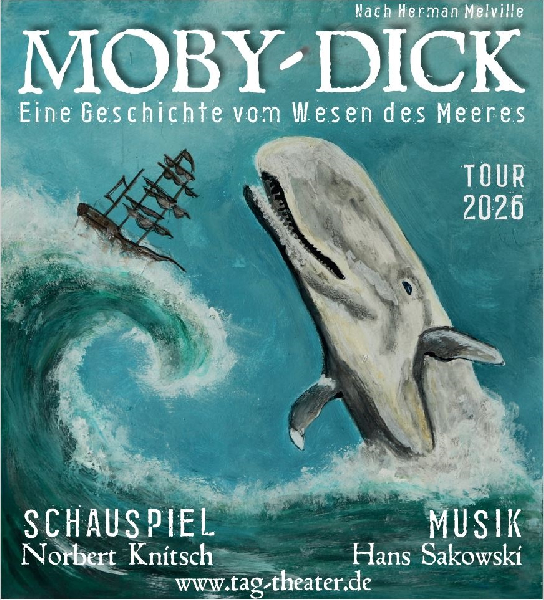 MOBY DICK , ein "Stück" Weltliteratur. Die Theaterproduktion von Norbert Knitsch (Schauspiel) und Hans Sakowski (Musik) geht ab Februar 2026 on Tour durch Norddeutschland.